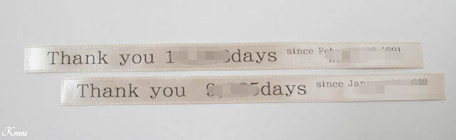 「Thank you / 〇〇○days(産まれてから結婚式当日までの日にち)/ since ○○○(生年月日)/ お名前」